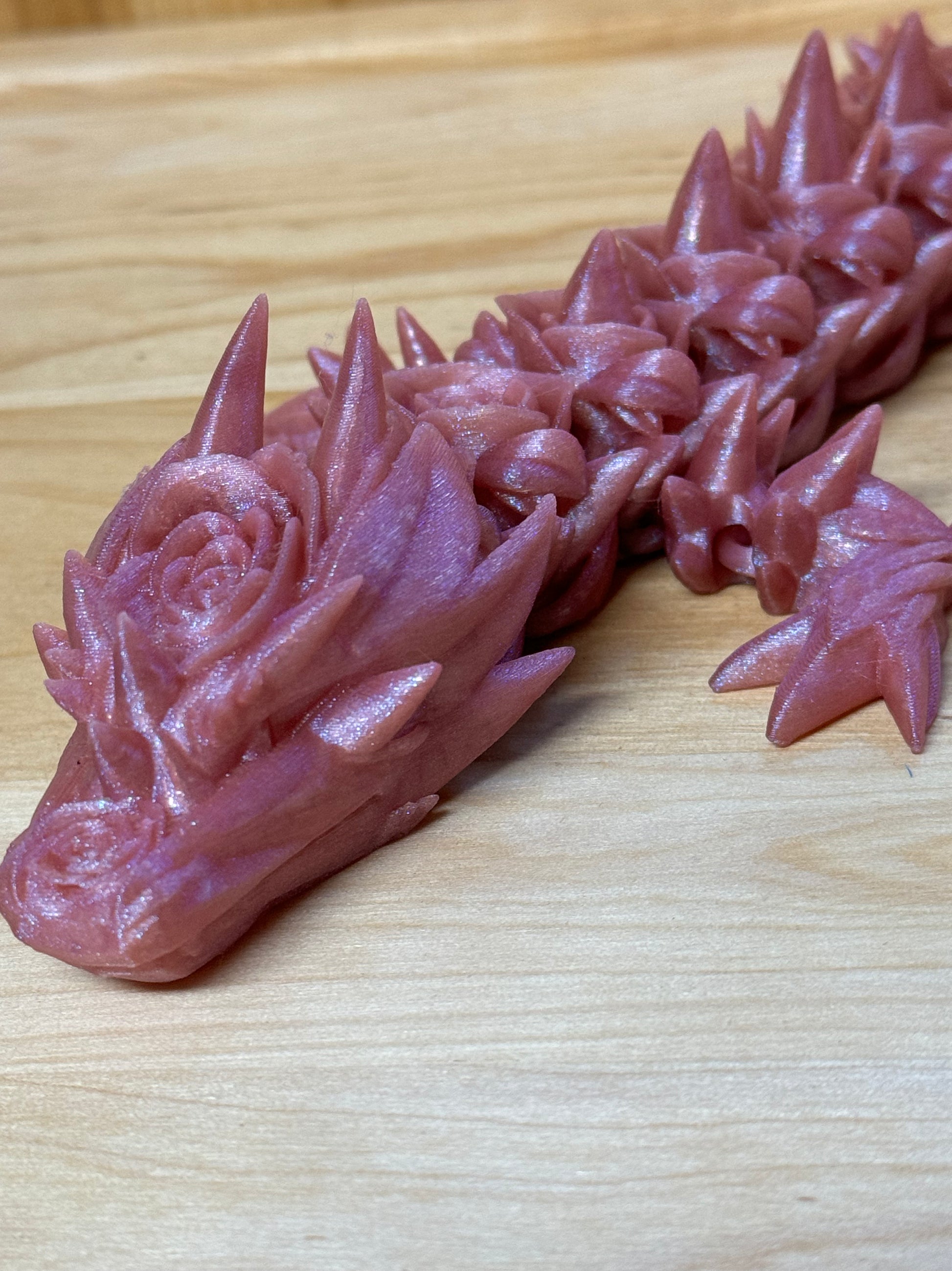 2 foot long, rose dragon in the color •rose quartz• shimmery iridescent filament